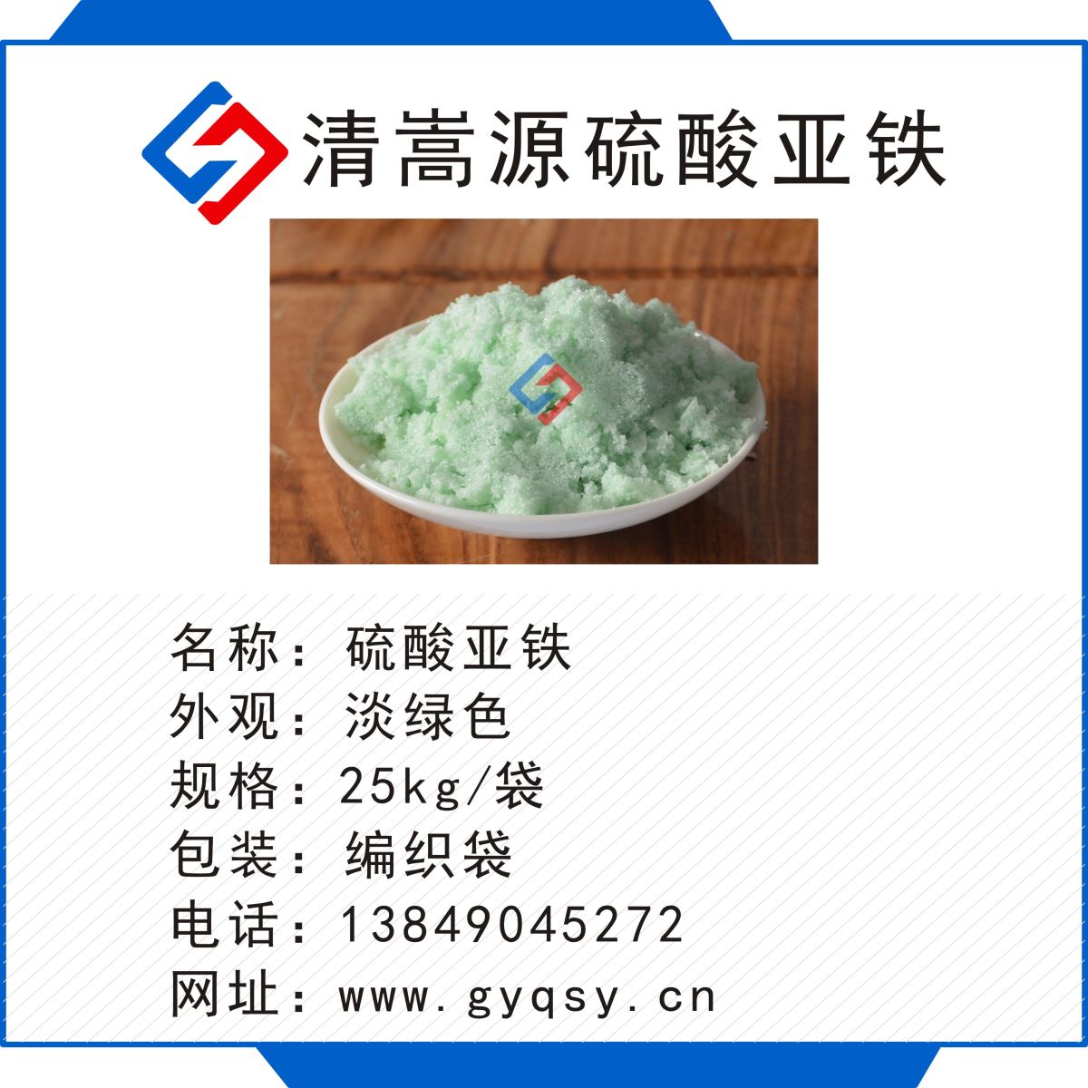 硫酸亞鐵的外觀及特性:藍(lán)綠色單斜結(jié)晶或顆粒,無氣味。